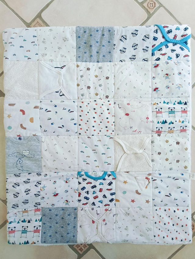 Une couverture qui réchauffe le corps… et le cœur. Chaque couverture souvenir est une pièce unique, confectionnée à la main à partir de vos vêtements chargés d’histoire : t-shirts, pyjamas d’enfance, robes, chemises, tissus de famille… Je les assemble avec soin pour créer une couverture douce, réconfortante et pleine de sens.