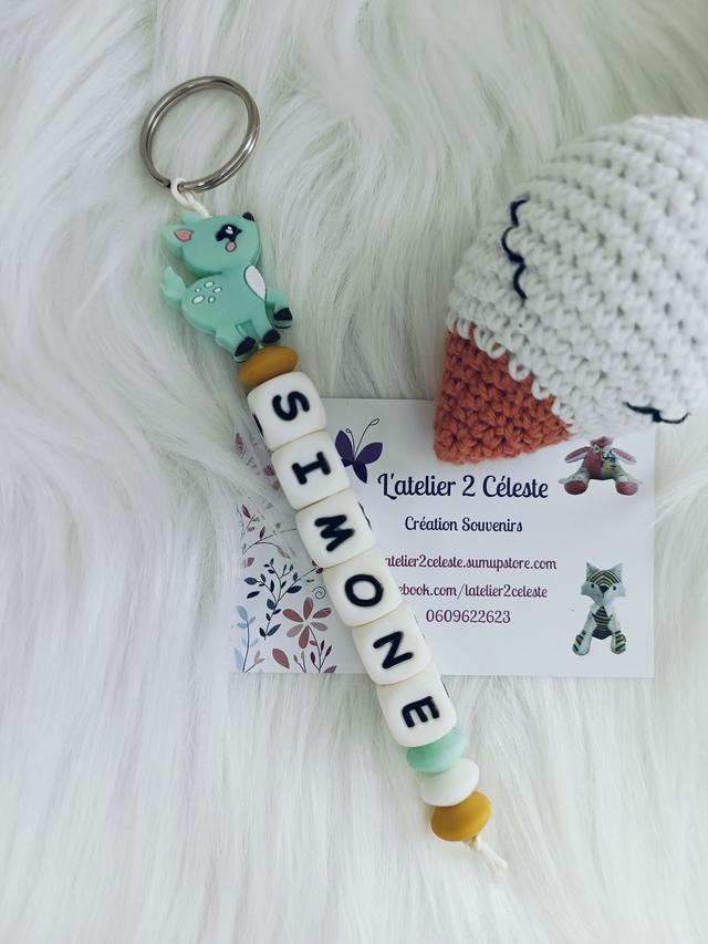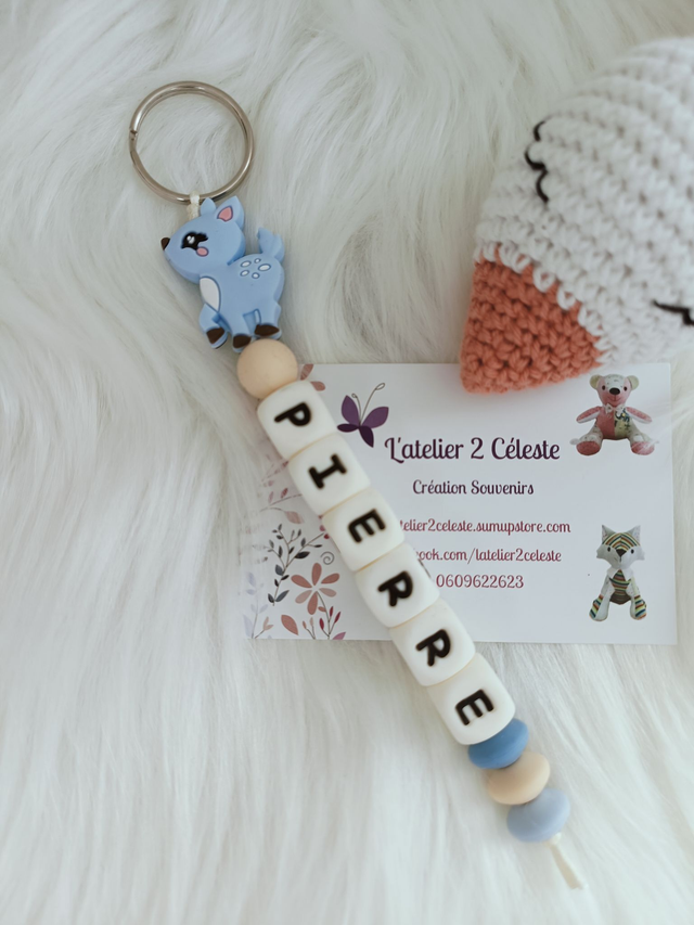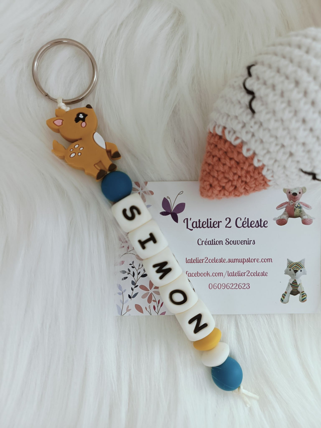 Porte-Clés en silicone décorée d'une biche personnalisable avec le prénom ou mot de votre choix jusqu'à 10 lettres