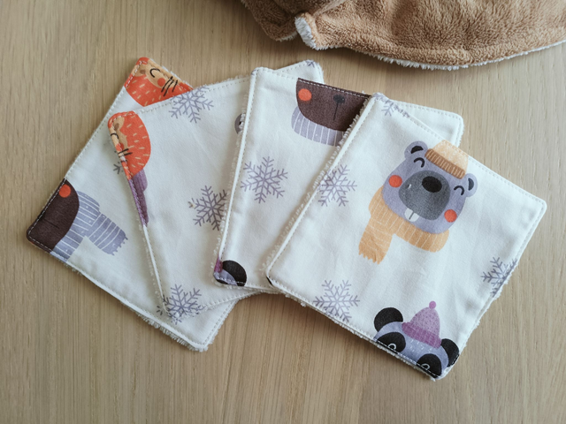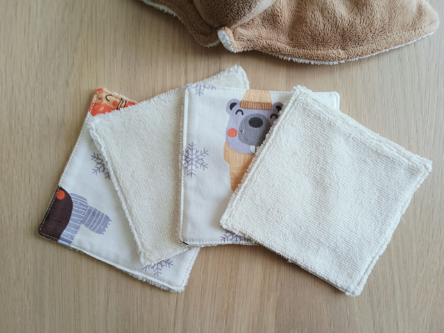 Le bavoir peut être accompagnée par un lot de 4 lingettes lavable qui sont une alternative aux lingettes jetable, plus économique et écologique, vous pouvez nettoyez ou débarbouiller votre bébé avec de l'eau, cela évitera les produits chimiques.